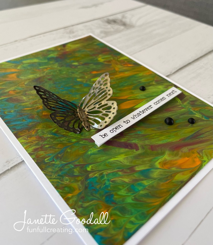 I haven’t used my gel plate for ages so got that out around 2:00 this morning. What a messy endeavour! But I am in love with how this card came out. (I didn’t enjoy the clean up at that time of the morning though LOL and my husband said he heard the hot tap running for a while).