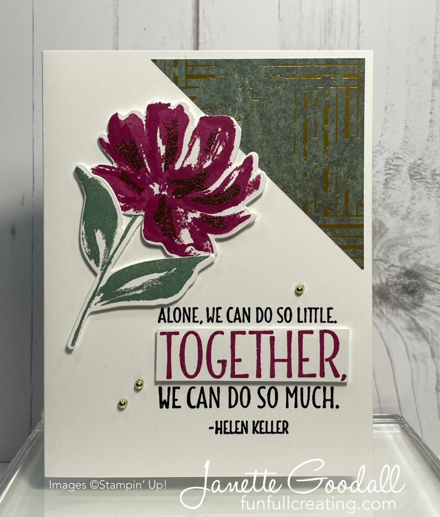 Absolutely beautiful card, Janette! I love the highlighted “together” and how it picks up on the colour of the flower. So glad you joined in the fun at Just Add Ink this week!