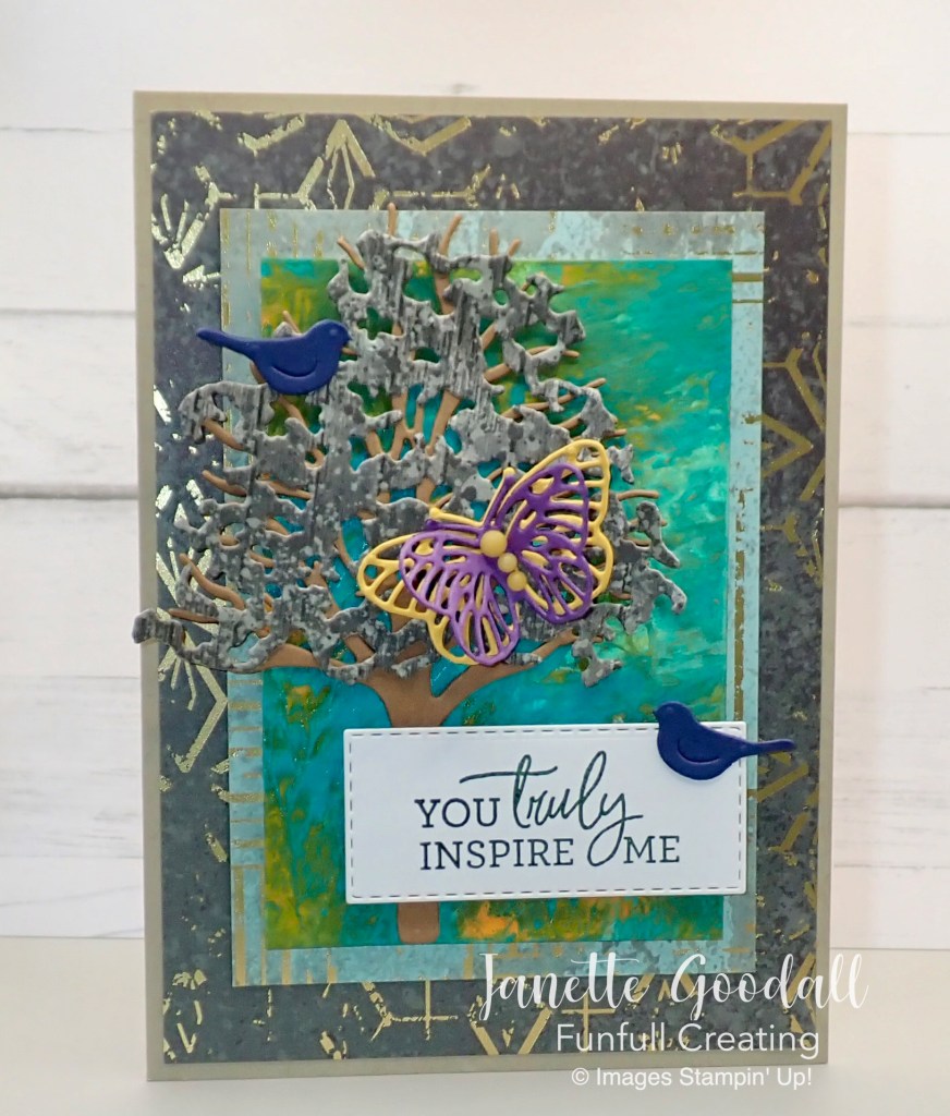 For my card I used a mixture of distress paint and Dylusions paint for the background for my tree.