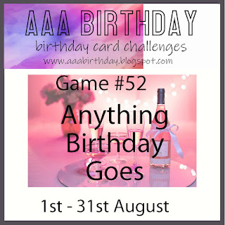 I love challenges! And this week I have combined three challenges to make this Happy Birthday card.