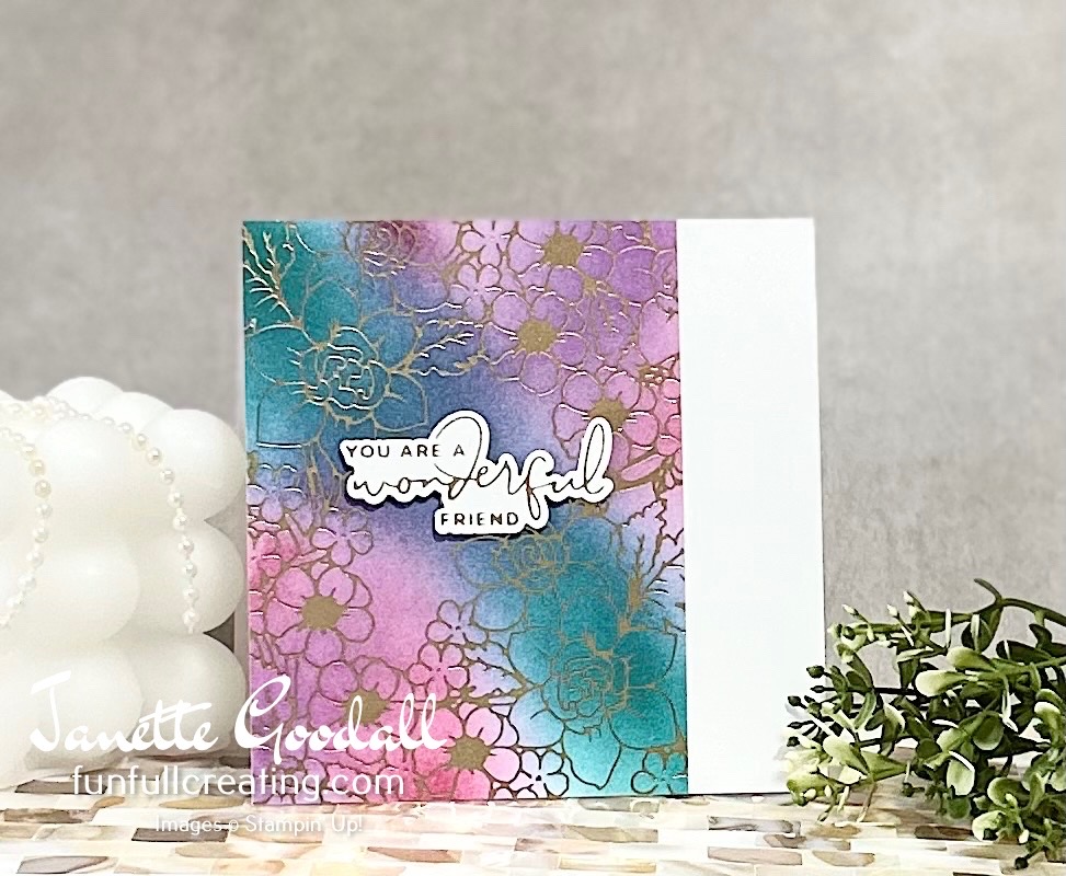 I have been playing with my Gemini Foilpress machine, I got some new foil dies and got out my inks and blending brushes. I love this card! I foiled the flower then blended three colours over the top and wiped the ink off the gold with a tissue. I can finally say I am feeling more comfortable with foiling 😊