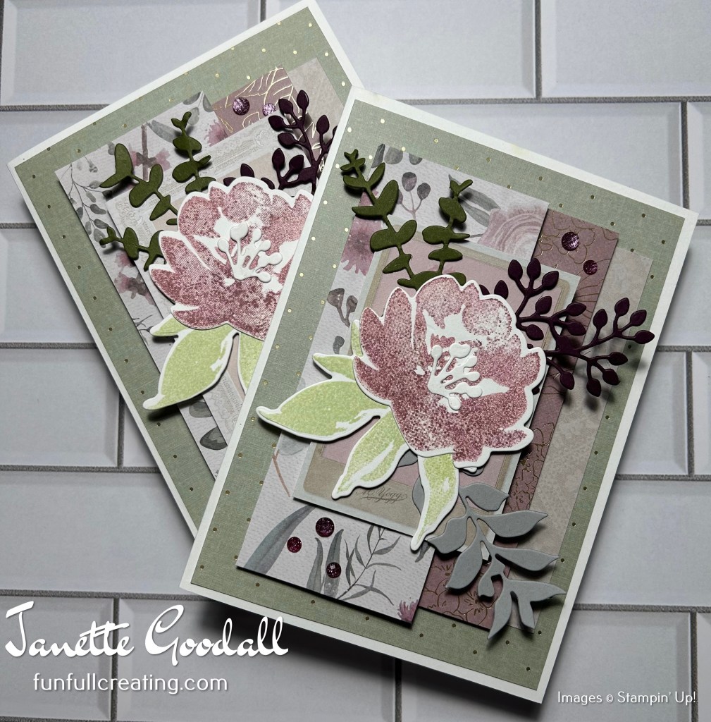 I went in there tonight and made these two cards using patterned paper, stamps and dies. I had fun! I will continue making cards but with a renewed focus. More on that later 🥰