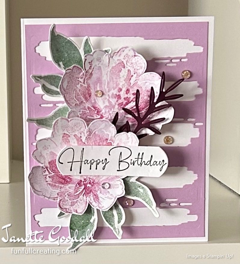 My card for this inspiration challenge for TGIF #464. I used one of my favourite Stampin’ Up! stamp sets Flowing Flowers.