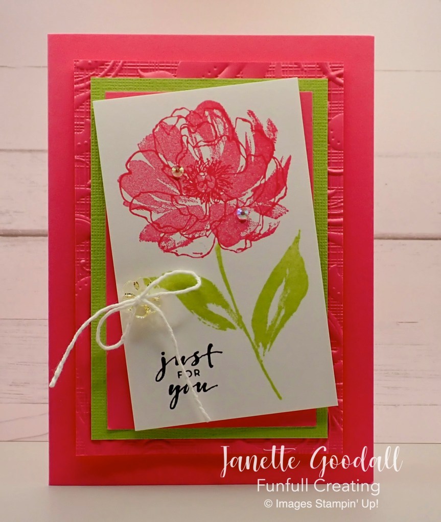 I’ve had a busy weekend creating cards for some challenge blogs that I have recently found and started entering my cards into. I love it! It is stretching me and my creativity in a way that I didn’t expect. I am using colour combinations I would not have thought of, creating from sketches which I have enjoyed for quite a while now, playing tic tac toe with techniques and embellishments, and using old rubber stamps on wooden blocks that I’ve had for years!