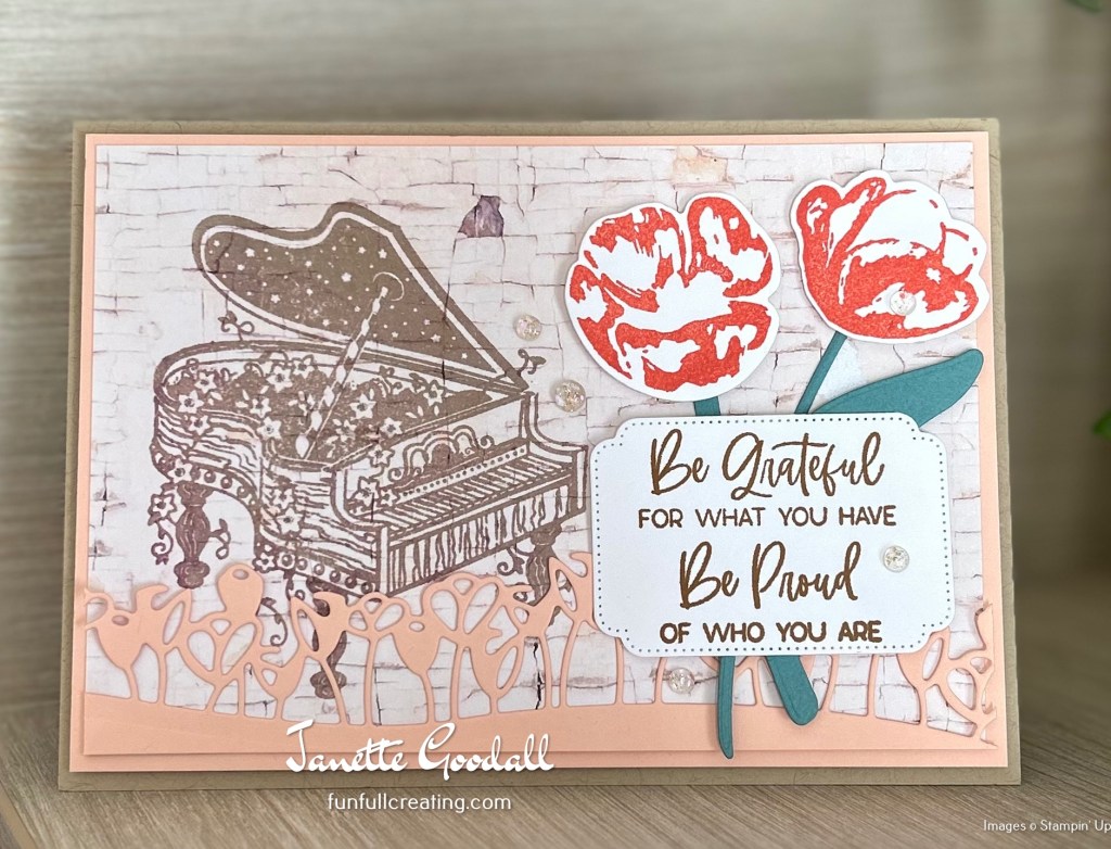 I have not used this gorgeous piano stamp from Fairy Hugs much, and have combined it with some tulips from my Flowering Tulips set from Stampin’ Up!