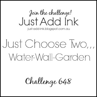 This challenge is a Choose Two challenge, the idea being to choose two of the three elements in the challenge, Water Wall and Garden, and for my card I chose Water and Garden.