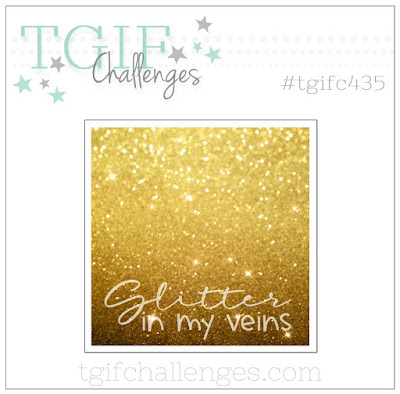 Glitter in my veins, the title of this week’s challenge with TGIF Challenges blog, #tgifc435. I chose to use glitter cardstock for my card, and found some left over pieces of card from a gelli plate session last month which I used as the background for the card.